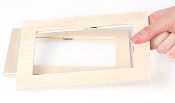 - Take the back piece off of two wooden frames and place to one side. Cut strips of a foam sheet the same length and width as each side of the frame and then stick to the back of it using double sided tape. Then stick the two frames together with the foam padding out the middle creating a deeper frame.