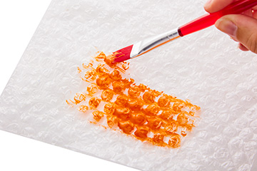 - Press the bubble wrap onto white card, painted side down. Make sure to apply pressure evenly over the entire painted bubble wrap.