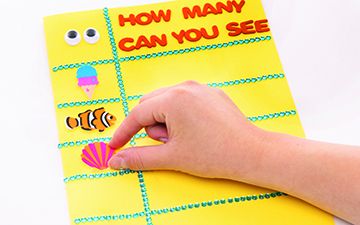 - Add the foam letters to spell the title of your game: HOW MANY CAN YOU SEE.