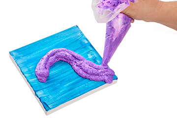 - Mix up the puffy paint, for this you will need: 1 CUP FLOUR 1 CUP PVA 2-3 CUPS OF SHAVING FOAM GENEROUS SQUIRT OF PURPLE PAINT