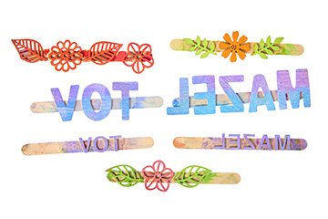 - Select wooden letters to spell MAZEL TOV, (or choose another greeting). To make a lettering stamp for printing, arrange the letters in a row then reverse the order, so the words are backwards. Use mini letters or bigger letters, depending on your design. Stick double-sided tape along 2 wooden craft sticks, peel off the backing paper then press the wooden letters onto the tape so they are evenly spaced. Use a separate stick for each word.