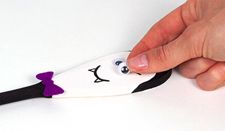 - Cut a small bow tie out of a sheet of purple felt and stick it to the 'neck' of the spoon with double sided tape.